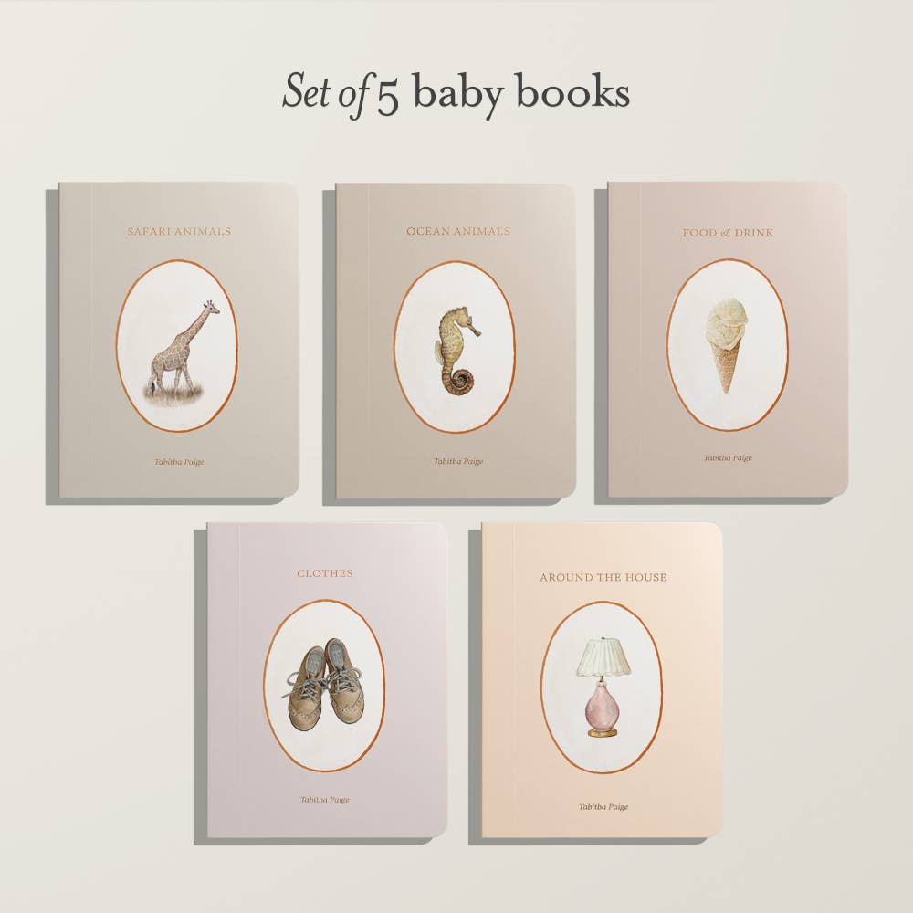 Designed by a professional watercolor artist and licensed speech therapist, Our Little Library Vol. 2 includes five new board books that feature charming watercolor illustrations and foundational first words that will help you build your child's vocabulary. The durable materials and small book size also make them perfect for your baby's little hands.