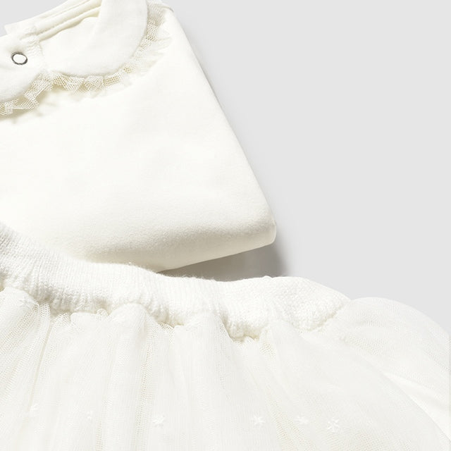 Dress your little one in charm with this adorable 3-piece set! The soft knit cardigan keeps her cozy, while the delicate tulle skirt adds a twirl-worthy touch. Paired with a comfy bodysuit, this outfit is perfect for playdates or special occasions, combining comfort and cute in one delightful package.