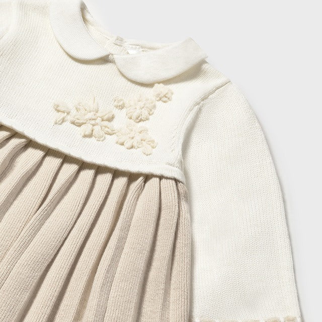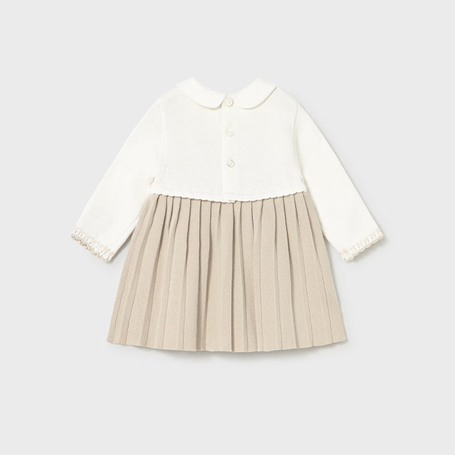 Dress your little one in cozy charm with this Baby Girl Beige Cotton Dress. Crafted from soft soy beige cotton, it features delicate embroidered details that add a touch of whimsy. Perfect for playdates or special moments, this dress keeps your baby comfy while looking absolutely adorable.
