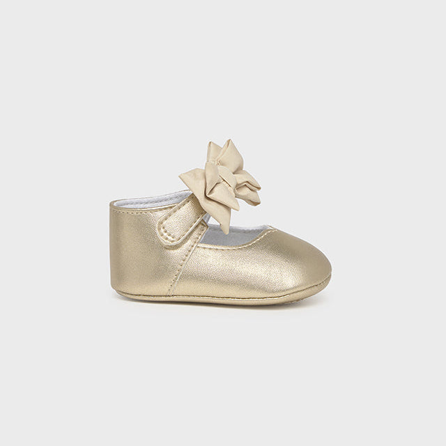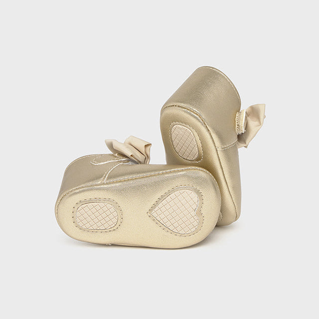 Baby Girl Gold Shoes with Ankle Strap & Elegant Bow