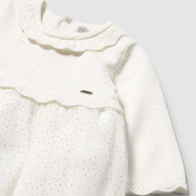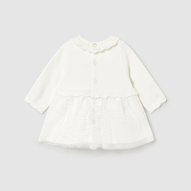 Baby Girl White Knit Dress – Long Sleeve Tricot Top with Tulle Skirt