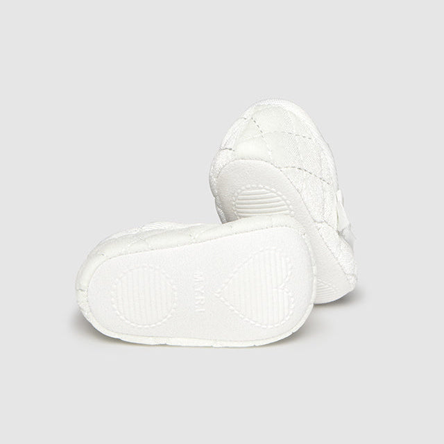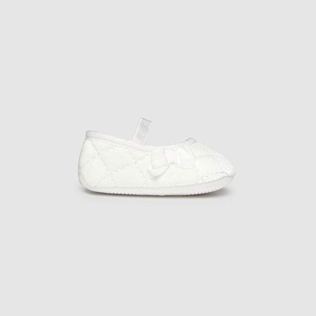 White Velvet Baby Shoes with Bow & Elastic Strap