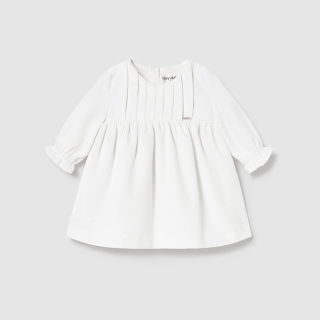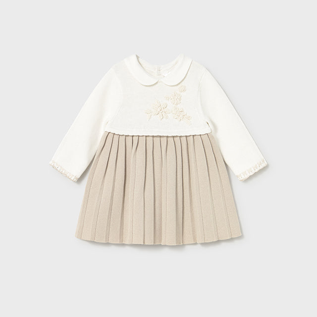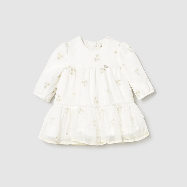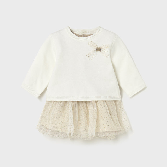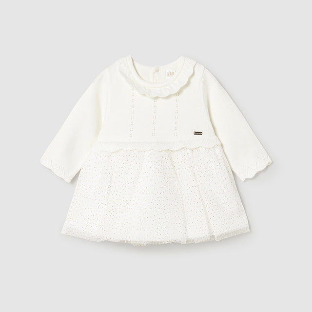 Baby Girl White Knit Dress – Long Sleeve Tricot Top with Tulle Skirt
