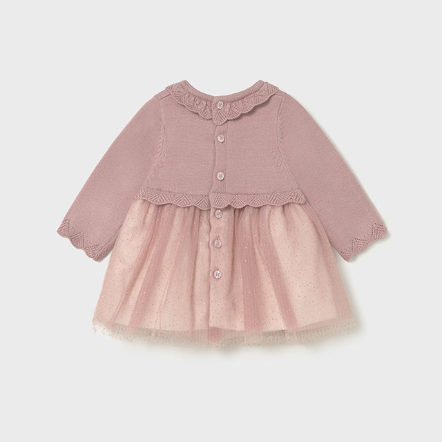 Baby Girl Pink Sweater Dress – Knit Top with Tulle Skirt