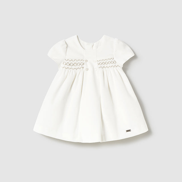 Baby Girl Beige Cotton Dress with Embroidered Details