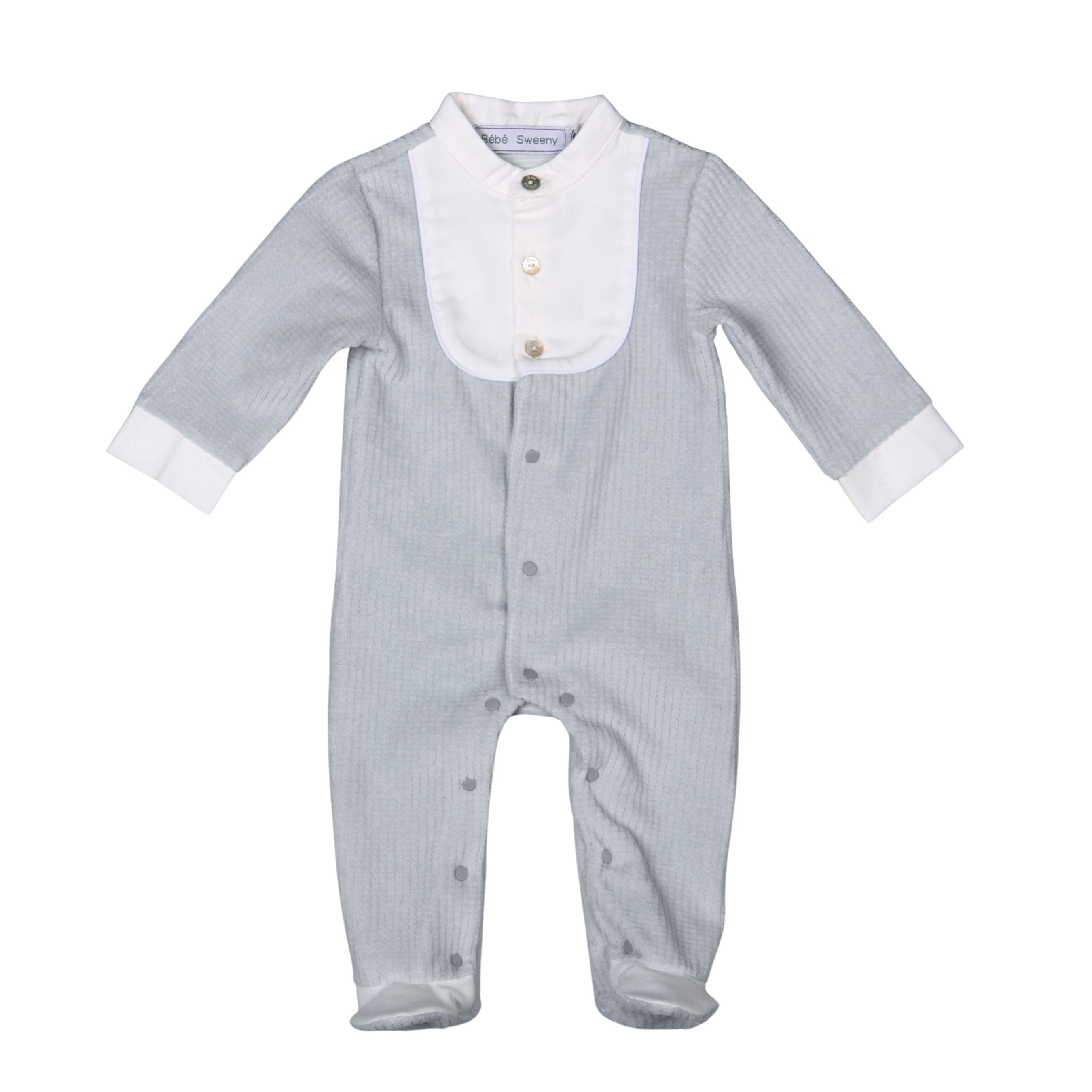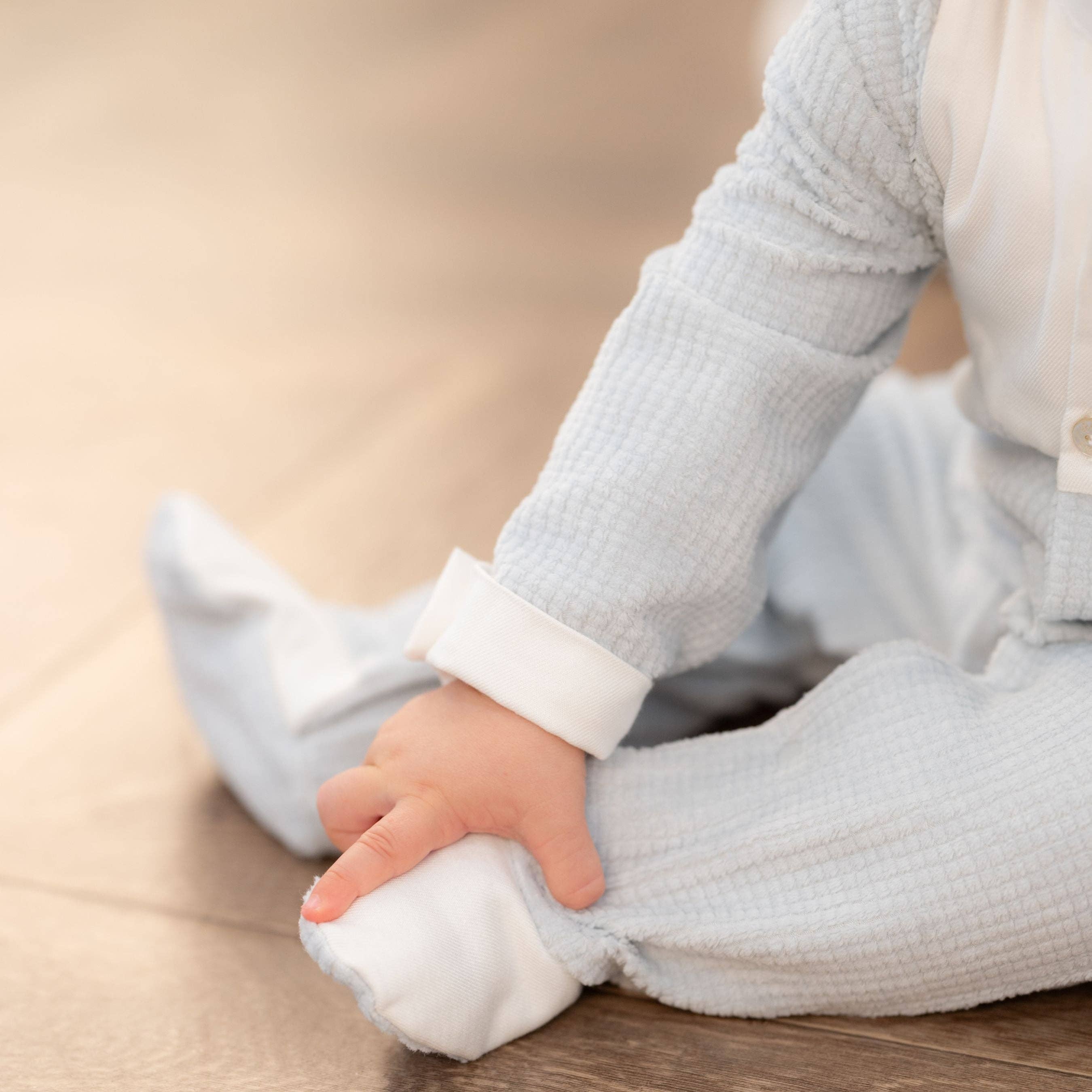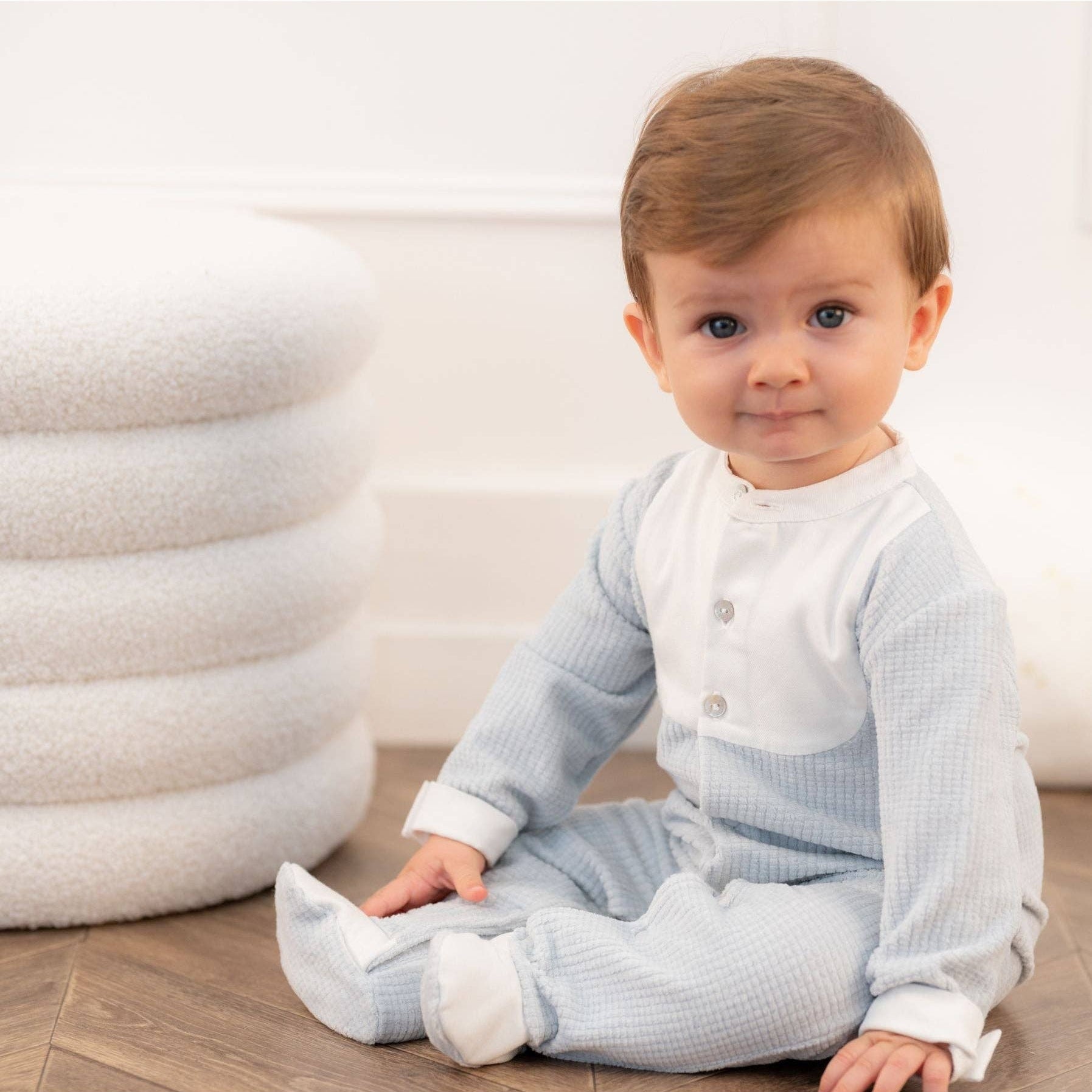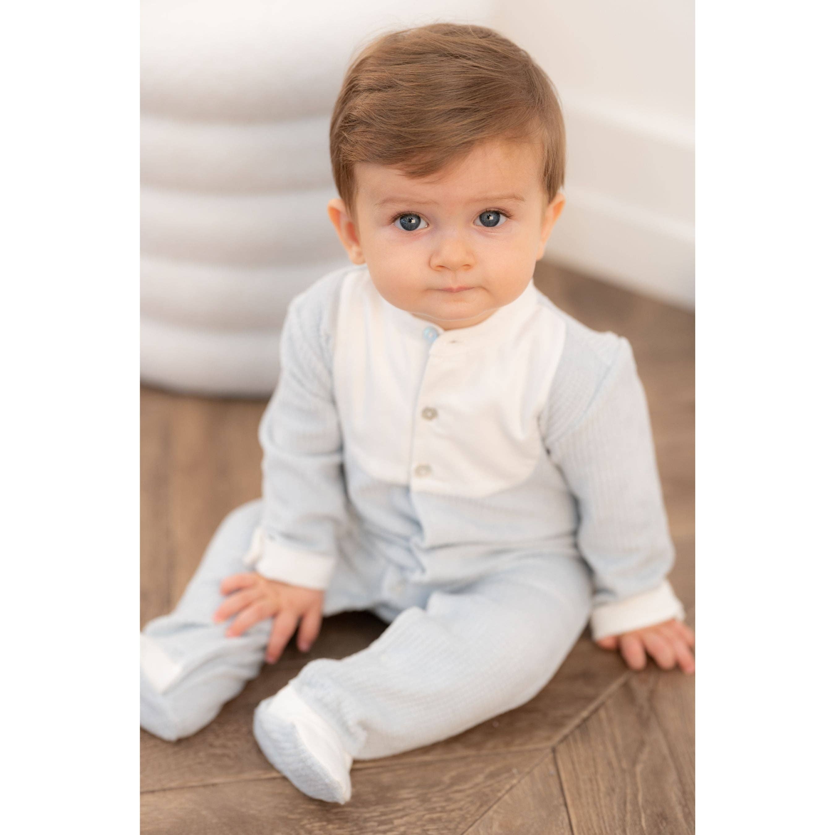 Baby Boy Velour Sleepsuit – Blue Embossed One-Piece Outfit