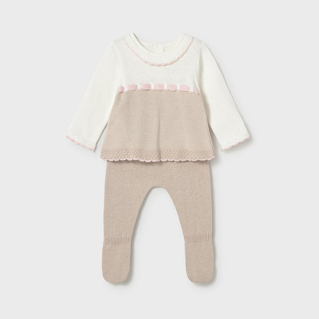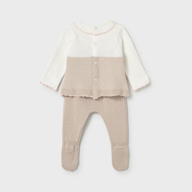 Introduce your precious newborn girl to timeless elegance with this charming Spanish-style mole knit set! Featuring delicate white and beige pointelle details, this sophisticated outfit brings Old World charm to modern motherhood. The soft knit fabric feels wonderfully gentle against sensitive newborn skin while the refined design makes every moment feel special. Perfect for christenings, family portraits, or those milestone celebrations, this occasion-worthy set combines tradition with comfort. The neutral color palette works beautifully with any accessories and photographs like a dream. Quality craftsmanship ensures this heirloom-worthy piece will be treasured for years to come. A beautiful way to welcome your little one in style and grace.