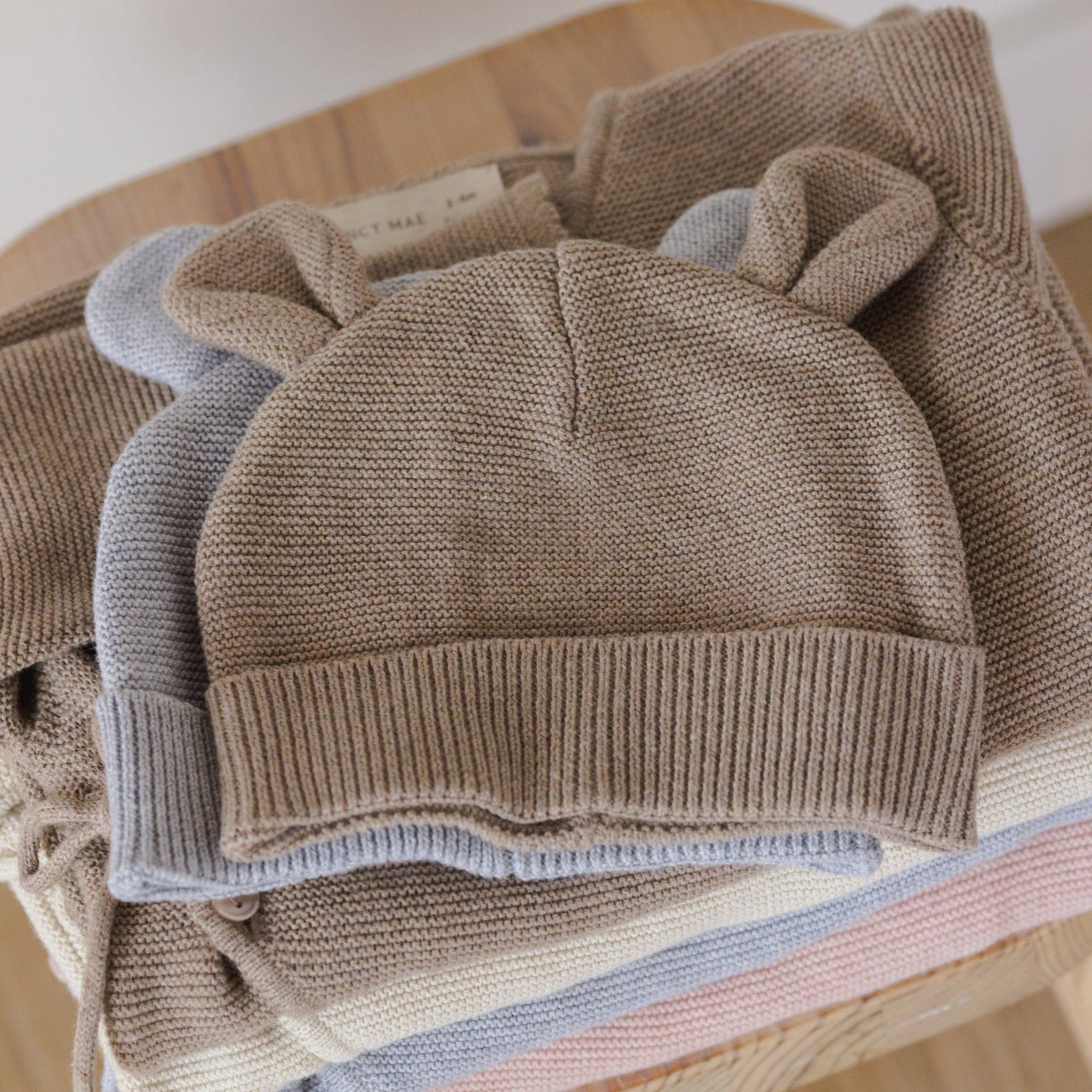 Cotton Knit Dusty Blue Bear Beanie