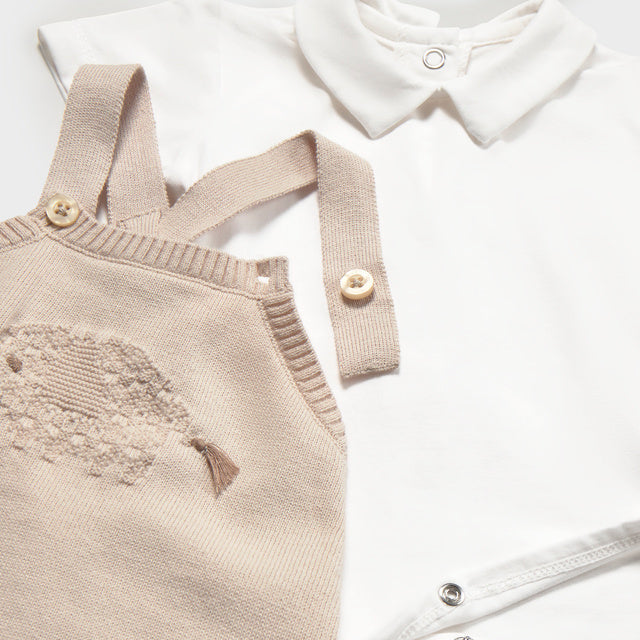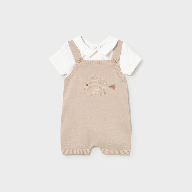 Baby Boy Mole Beige Knitted Elephant Overalls Set
