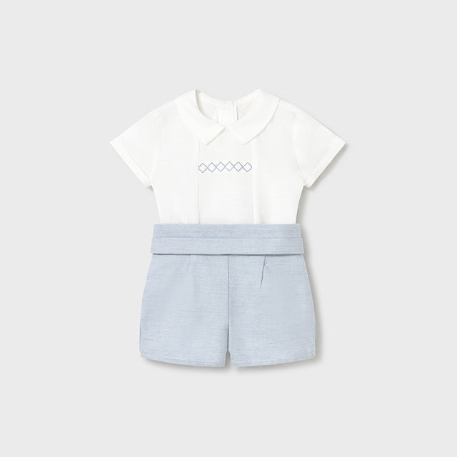 Little ones will love the comfort and style of this charming two-piece linen set! Featuring a classic short-sleeve button-down shirt paired with coordinating shorts, it's the perfect outfit for warm weather adventures. The breathable linen fabric keeps your baby cool and comfortable all day long, while the timeless design works for everything from playdates to family gatherings. Easy to mix and match with other pieces in his wardrobe, this set is a wardrobe essential that grows with your little guy's style!