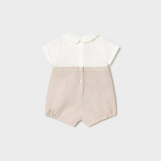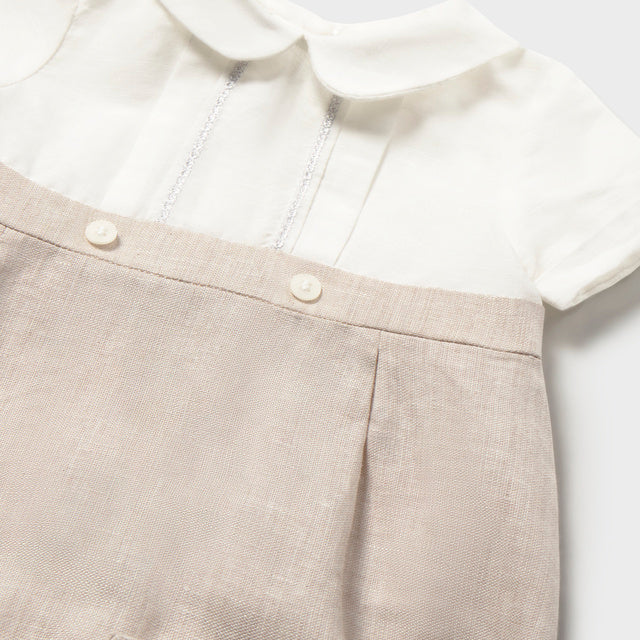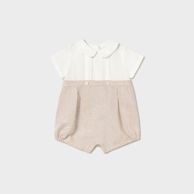 Make your baby boy the star of the ceremony in this elegant wheat beige romper that looks like a two-piece suit! The linen-look fabric gives sophisticated style while staying soft and comfortable against delicate skin. Perfect for baptisms, weddings, and all those milestone celebrations, this romper creates a polished, grown-up look without the fuss of actual separates. The classic neutral tone photographs beautifully and pairs perfectly with dress shoes or tiny loafers. Easy snap closures make diaper changes stress-free, even in formal settings. Quality construction ensures he'll look dapper through the entire event, and you'll treasure the photos of your little gentleman looking absolutely precious!