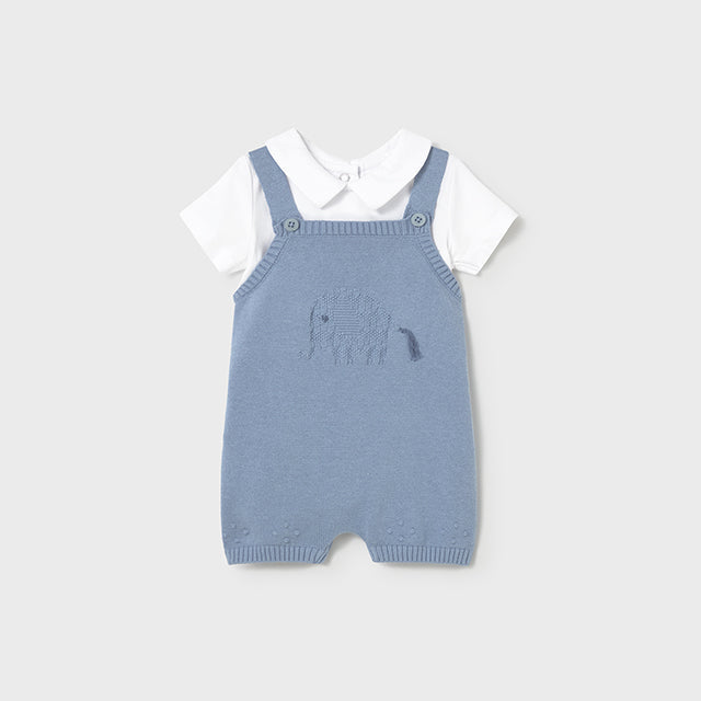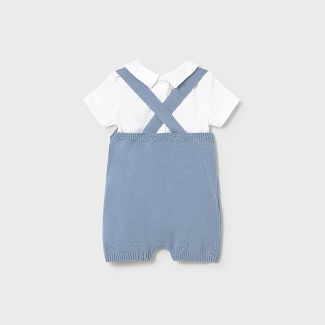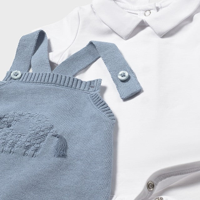 Baby Boy 2-Piece Atlantis Blue Knit Dungarees Set