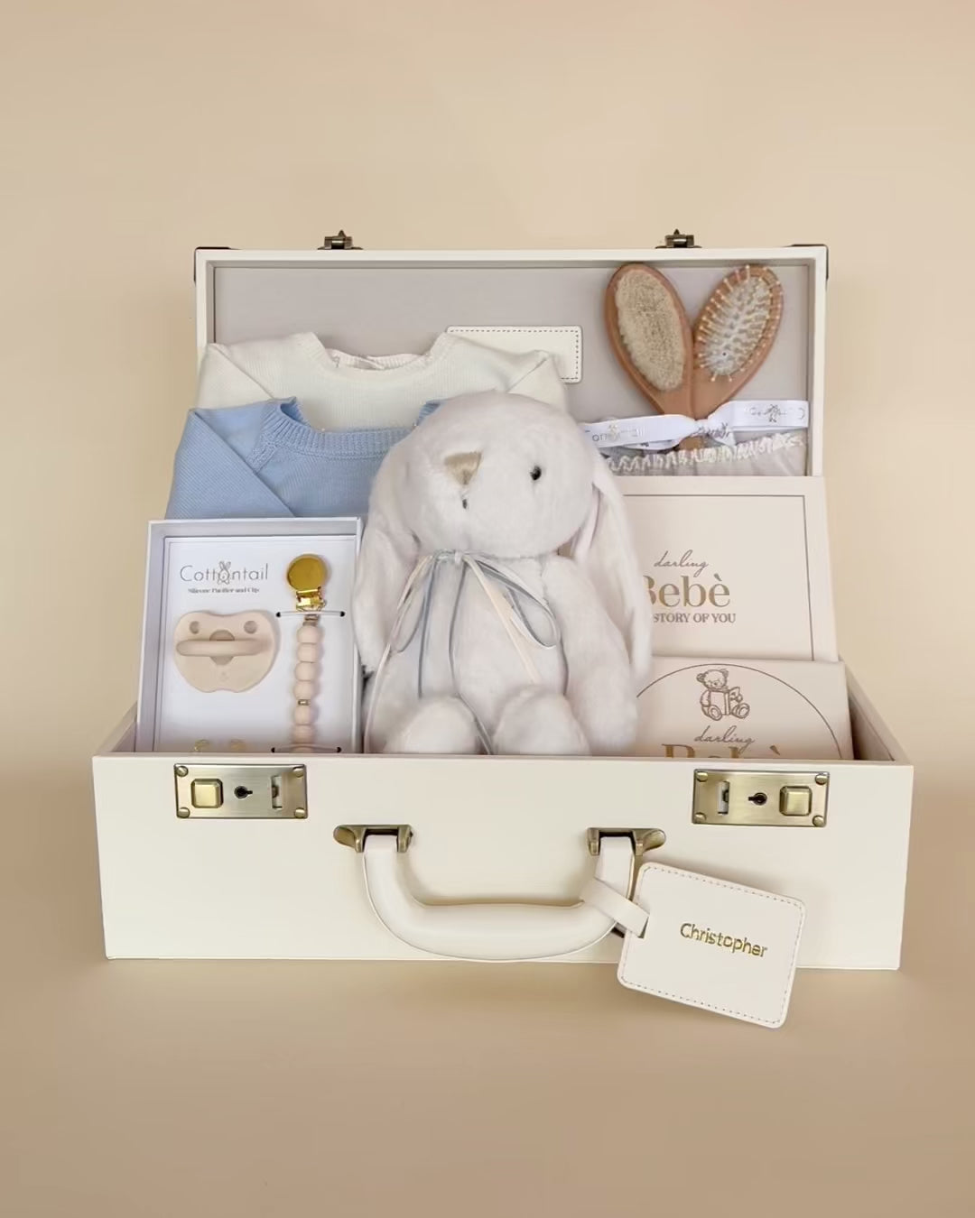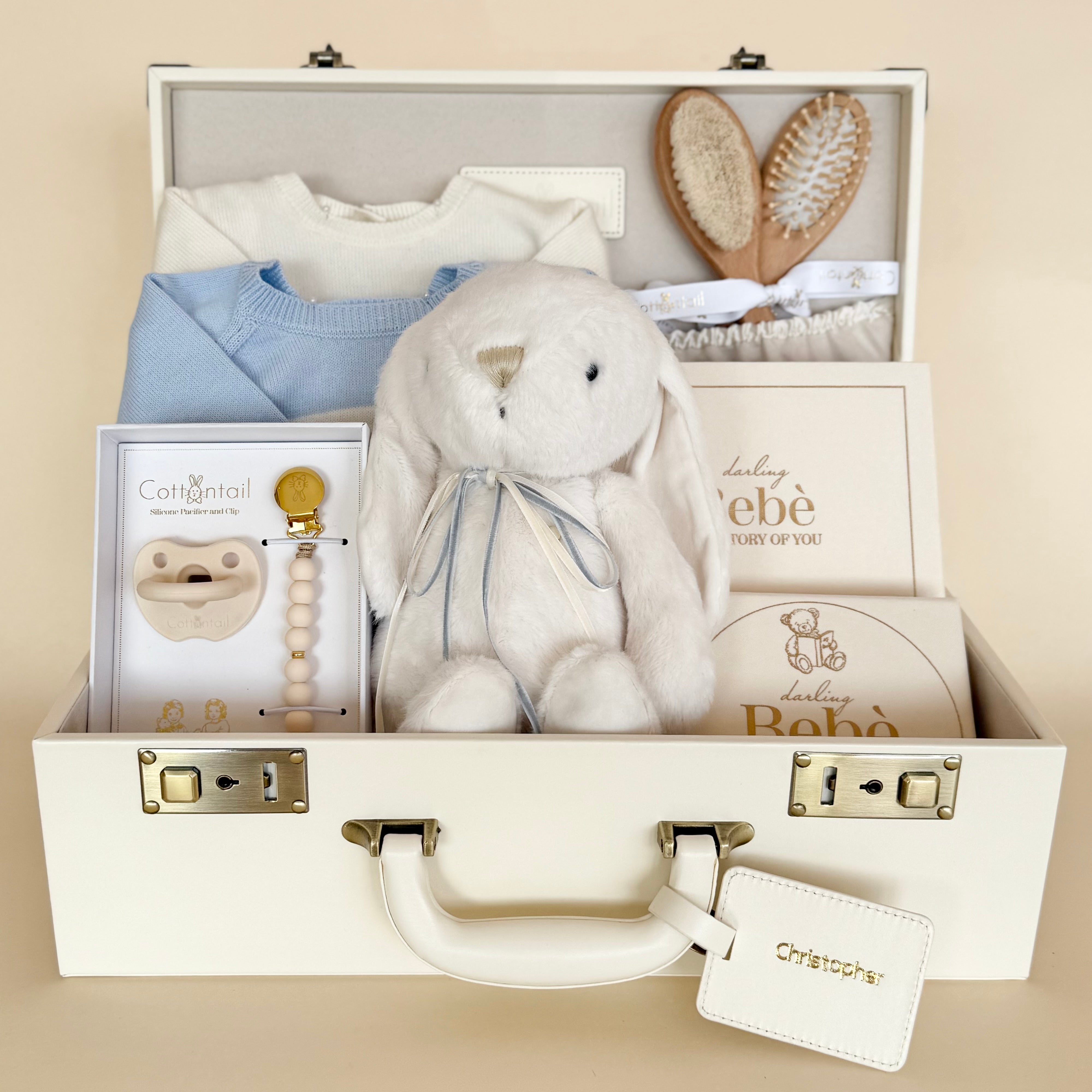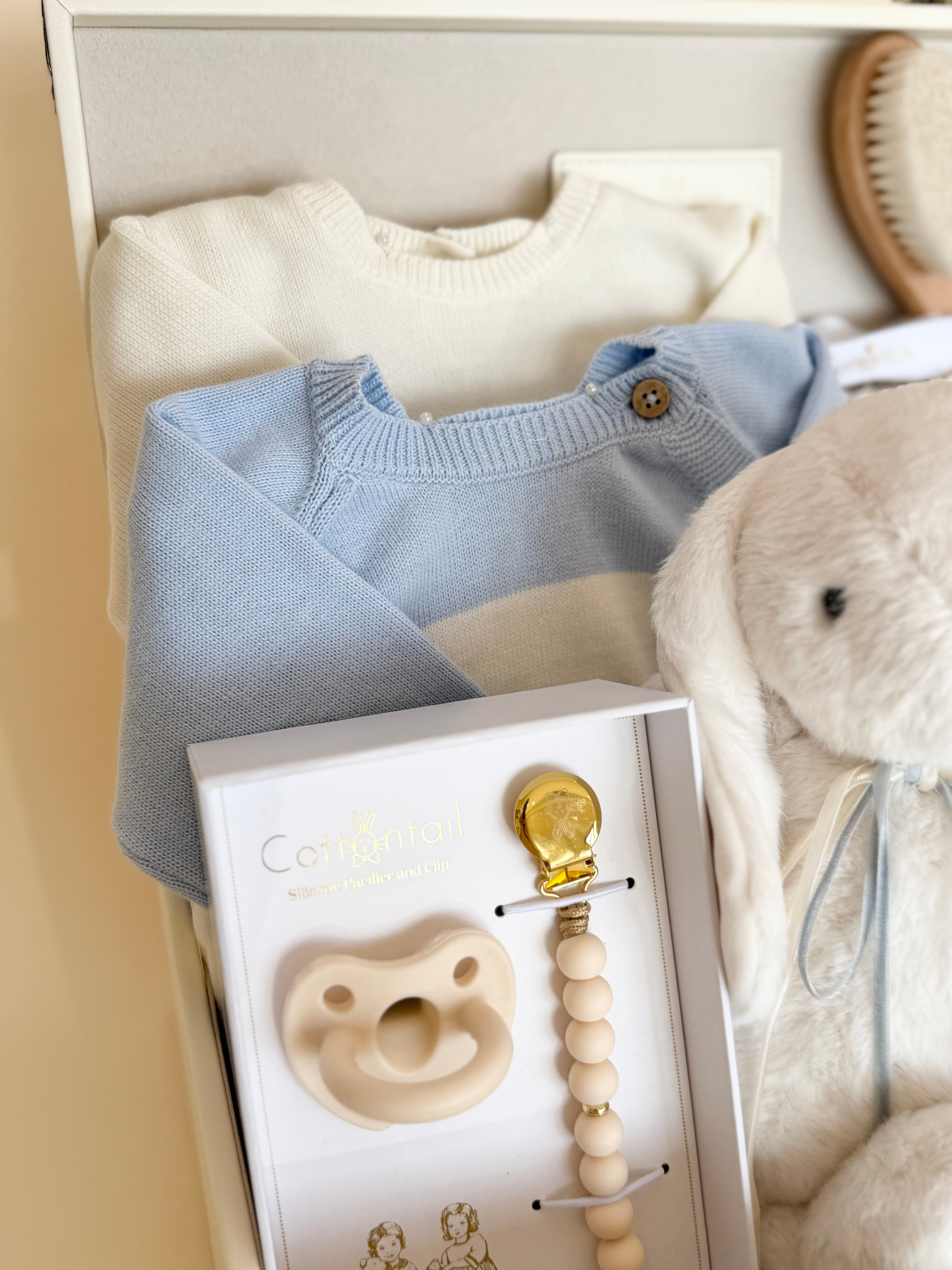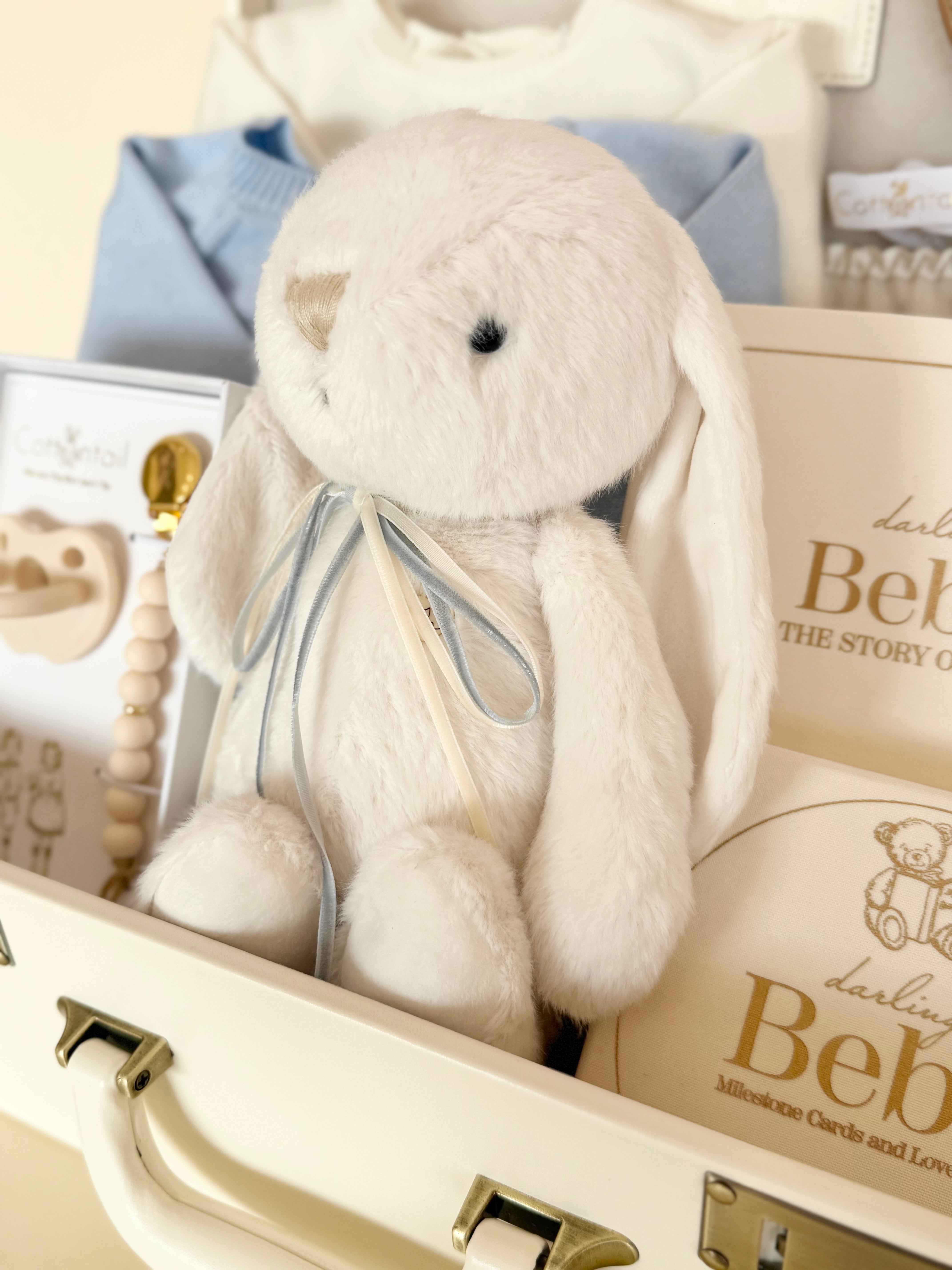 Every piece is selected to feel cozy, heirloom-worthy, and full of heart—creating a gift that celebrates new beginnings with comfort, charm, and a little bunny love.