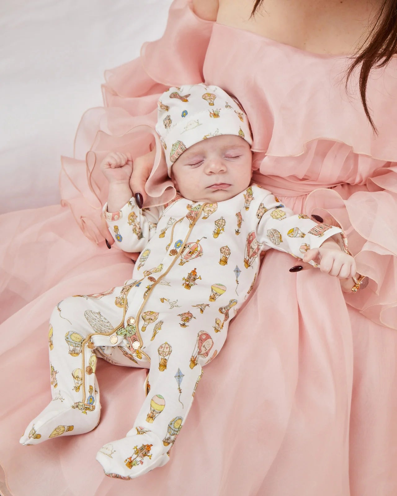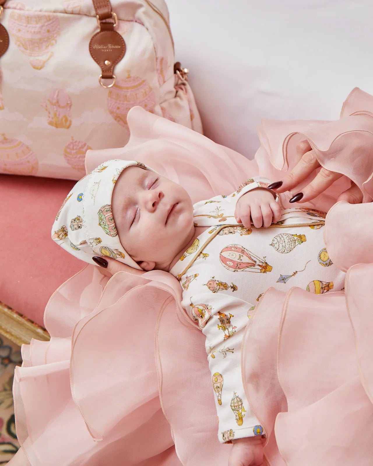 Our signature, gender-neutral print on luxurious cotton, with Atelier Choux gold studs and gold piping detail, sourced from Japan.