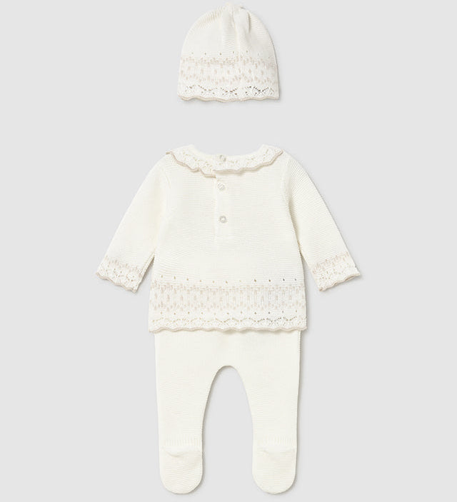 White Lace Cozy Leg Warmer & Hat Set for Baby Girl