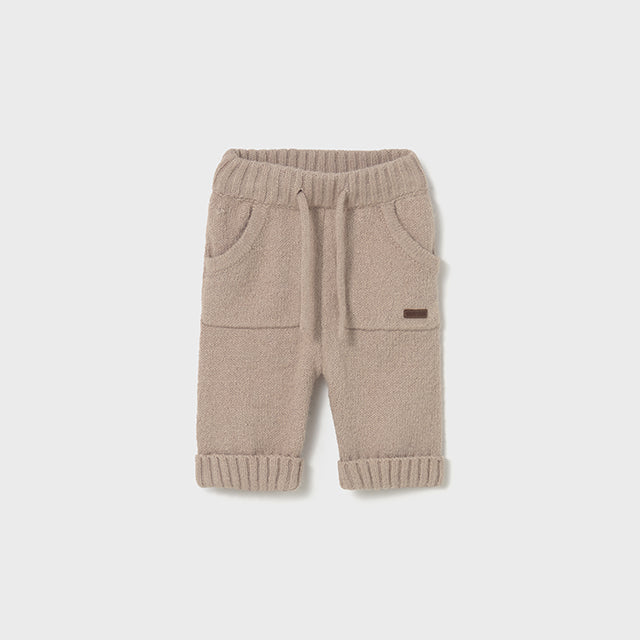 Beige Baby Knitted Cotton Pants with Drawstring and Pockets