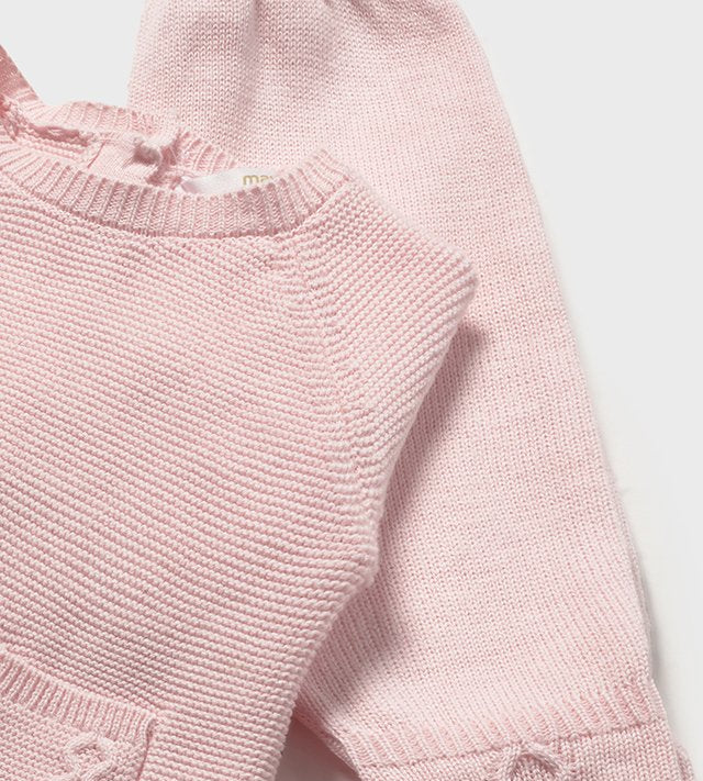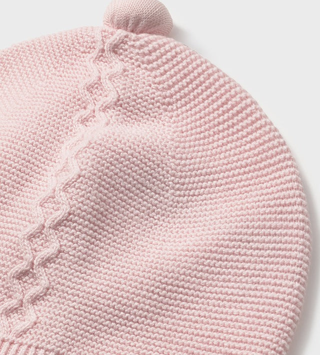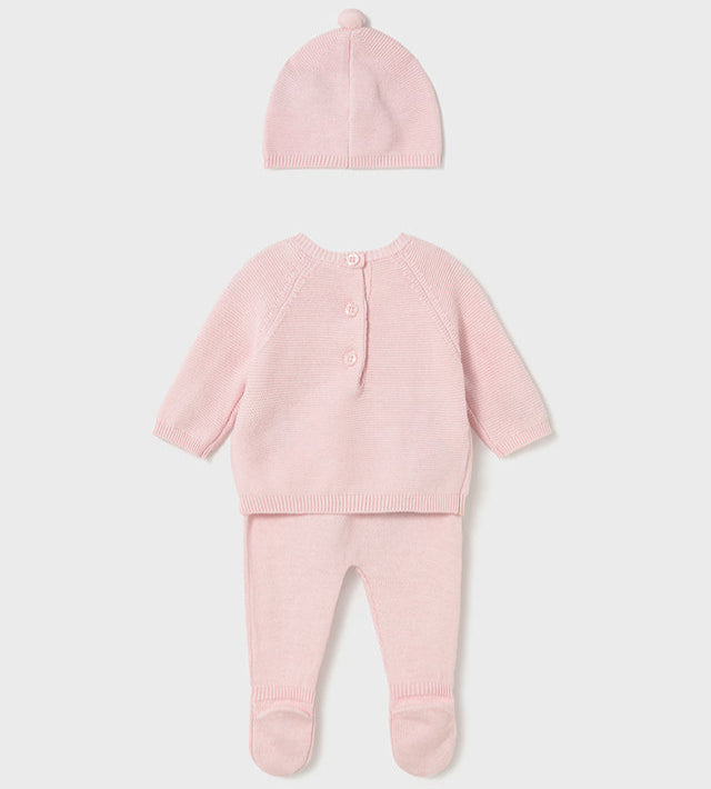 Baby Pink Knitted Cotton Sweater, Footie & Hat Set