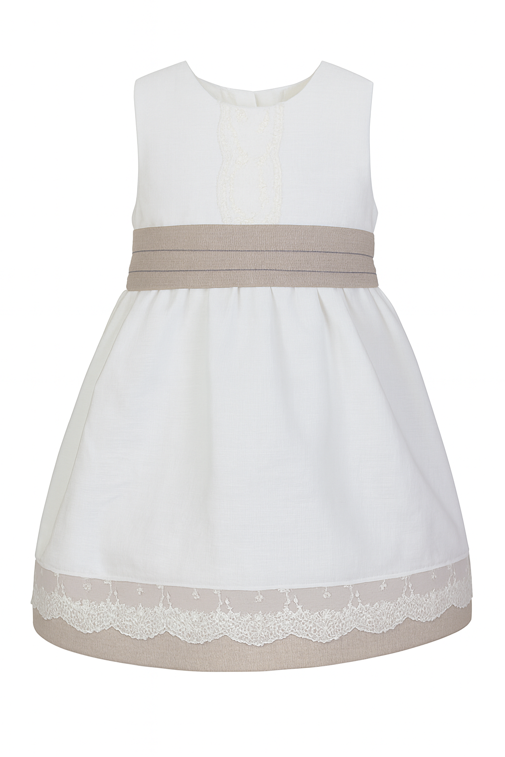 El vestido de lino Gianna ejemplifica una sofisticación atemporal, confeccionado en una combinación tradicional de lino beige y camel. Con una textura única de encaje, junto con un corte de cintura alta sin mangas, elegantemente rematado con un lazo de lino, esta pieza de alta costura es un testimonio de la elegancia clásica. 100% FABRICADO EN ESPAÑA.