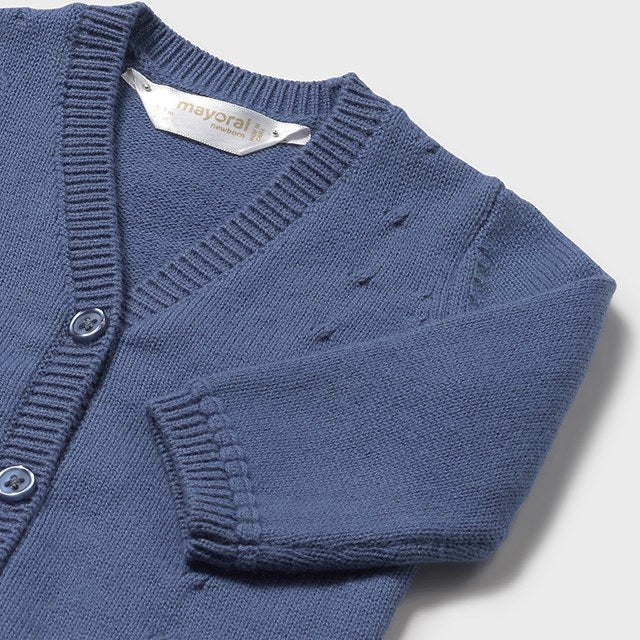 Keep your little one cozy and stylish with the Arctic Blue V-Neck Knit Baby Cardigan. Crafted from a soft cotton wool blend, this charming knit baby cardigan offers gentle warmth and comfort, perfect for delicate baby skin. Its fresh arctic blue color adds a playful touch, making it a standout piece from our children’s boutique. Ideal for your baby boy’s wardrobe, this sweater brings both snugness and sweetness to every day.