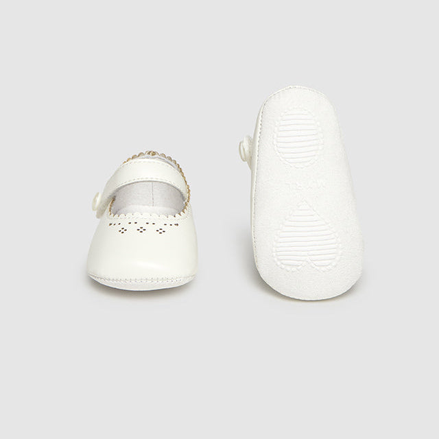 Every little girl deserves a pair of pristine white Mary Janes for her most memorable moments! These elegant dress shoes are the ultimate choice for baptisms, christenings, and milestone celebrations. The signature ankle strap provides a secure, adjustable fit while the supremely soft sole supports natural foot development. Crafted with care, these timeless beauties photograph beautifully and feel wonderfully gentle on tiny toes. The classic Mary Jane silhouette is a wardrobe staple that pairs perfectly with any special occasion outfit. Create lasting memories with shoes as sweet and special as your baby girl!