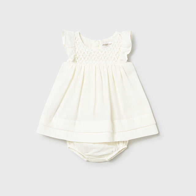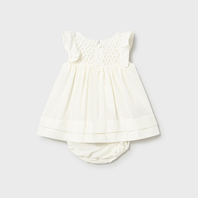 Celebrate every moment in this precious white smocked cotton dress set! The charming flutter sleeves and delicate smocking create timeless elegance, while the soft cotton fabric feels wonderfully gentle against delicate skin. Complete with a coordinating diaper cover, this thoughtful set is ideal for christenings, family portraits, or special celebrations. The intricate smocking detail adds sophisticated charm without overwhelming her delicate frame. Breathable cotton keeps her comfortable throughout the day, and the classic white hue works beautifully with any accessories. Quality craftsmanship ensures this heirloom-worthy piece will be treasured for years to come. A picture-perfect ensemble that brings understated grace and timeless beauty to those precious early moments.