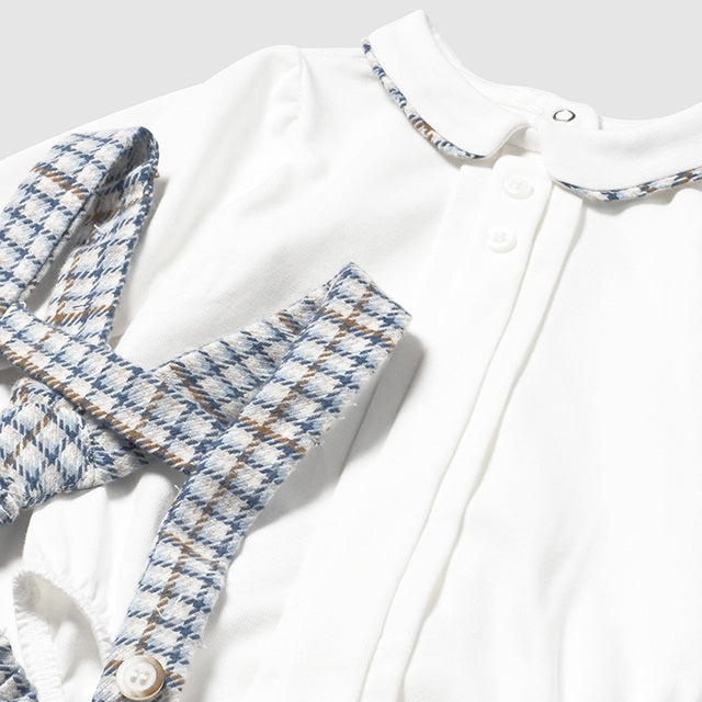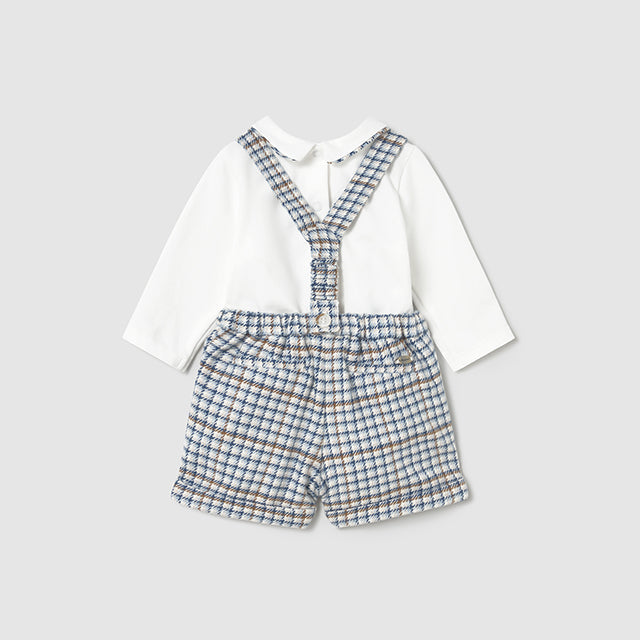 Blue Bell Checked Shorts with Suspender and Shirt Set