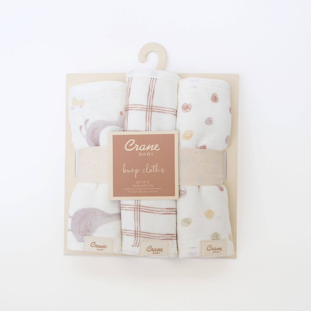 Soft, sweet, and inspired by countryside animals, this trio of muslin burp cloths features adorable goose prints, plaid, and polka dots. Crafted from breathable, pre-washed cotton, they’re gentle on baby’s skin and designed to handle all of life’s little messes. Add them to your everyday routine or gift them to a new parent who loves a little farmhouse flair.