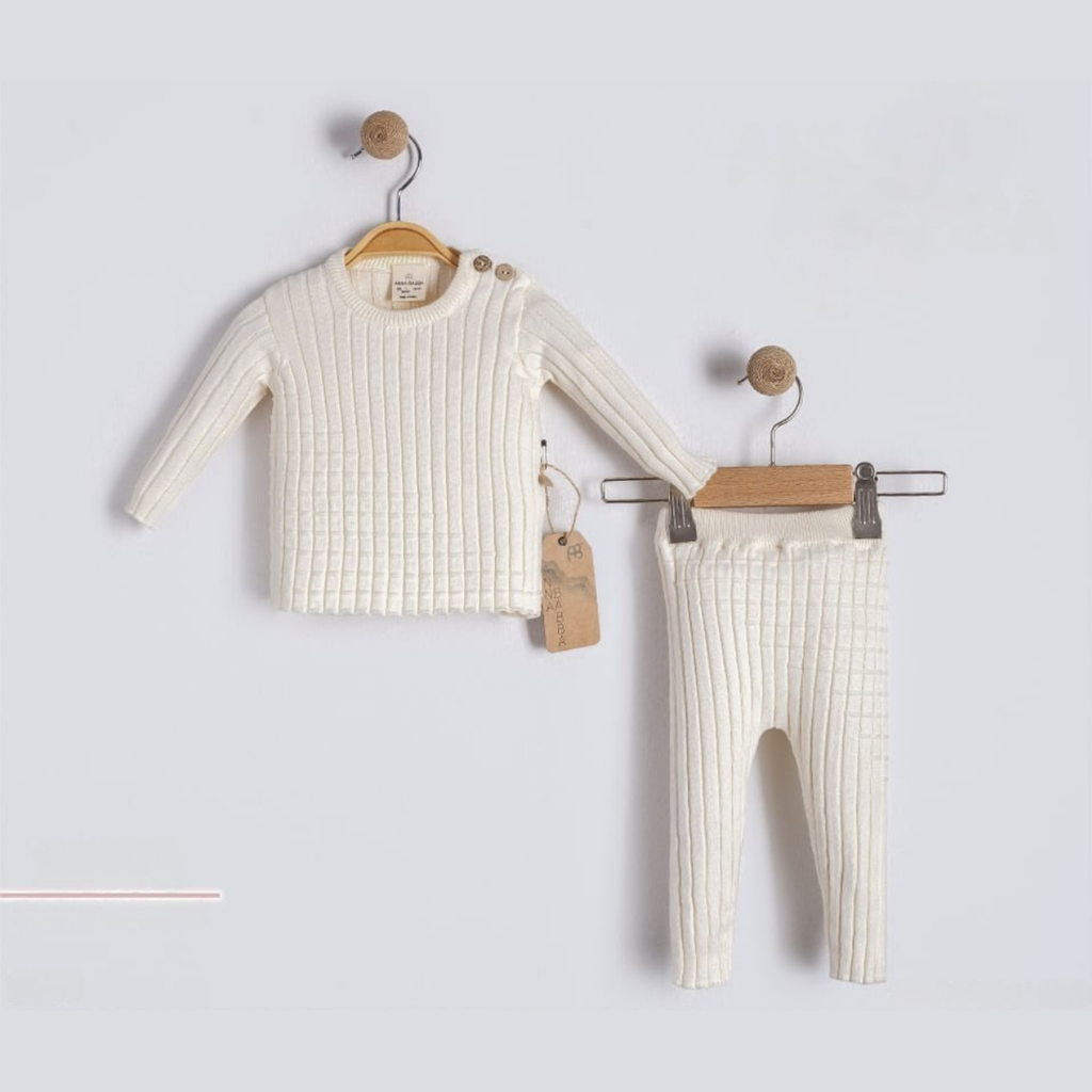 Our Cream Ribbed Cotton 2-Piece Set is the perfect everyday essential for little ones. Made from 100% premium cotton, this matching top and pant set is soft, breathable, and gentle on delicate skin. The ribbed texture adds a touch of style while providing all-day comfort.