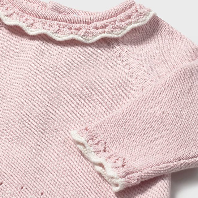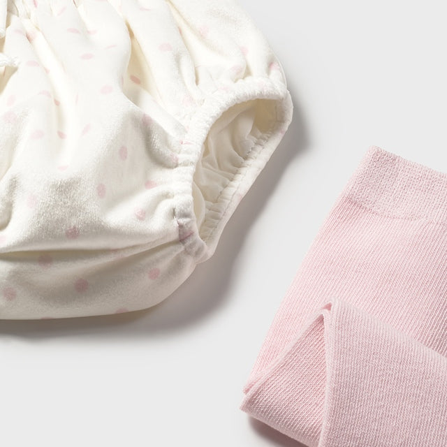 Wrap your little one in cozy charm with this Crystal Knit Sweater and Bloomers with Tights Set. The soft knit sweater keeps her warm while the matching bloomers add a cute, comfy touch. Complete with snug tights, this playful set is perfect for twirling, crawling, and all the giggles in between. Ideal for brightening up any day with a dash of sweetness and comfort!