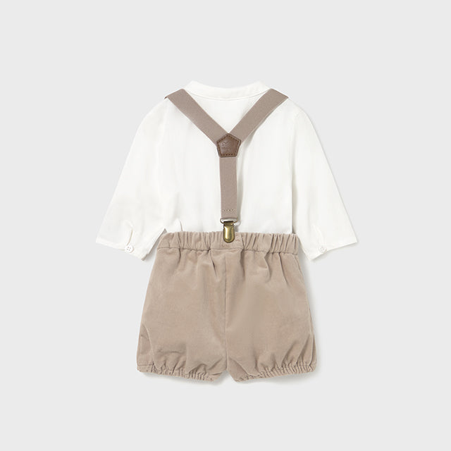 Long Sleeve Button Down Shirt with Suspender Shorts