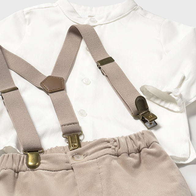 Dress your little one in this adorable long sleeve button-down shirt paired with charming suspender shorts. Perfect for playdates or family gatherings, this outfit offers both style and comfort. The breathable fabric keeps your child cozy while the suspenders add a fun, classic touch that’s sure to stand out. Easy to mix and match, this set makes getting dressed a joyful adventure every day.