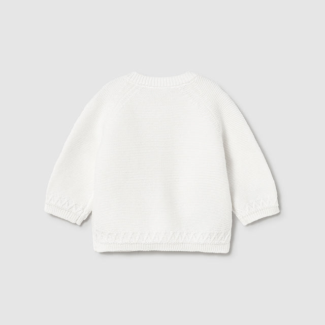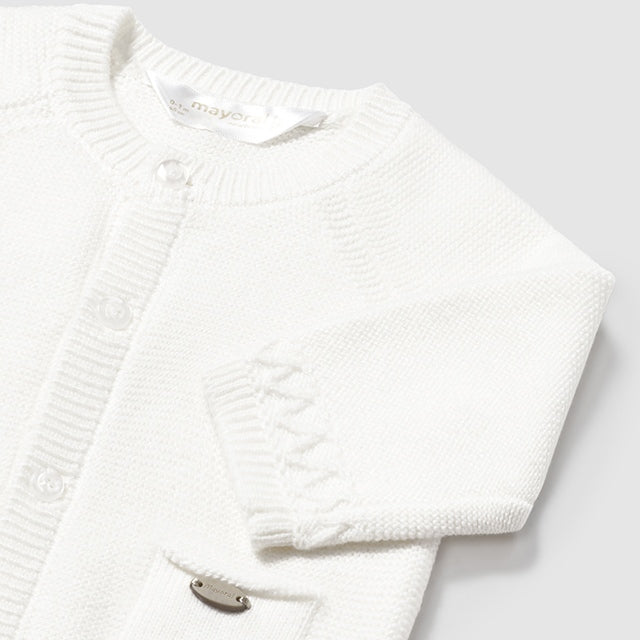 Dress your little bundle of joy in this Soft White Baby Knit Cardigan—where cozy meets cute! Crafted from snuggly cotton wool, it’s soft enough for the tiniest skin and features playful front pockets perfect for hiding little treasures. Button up for warmth and giggles on chilly days!