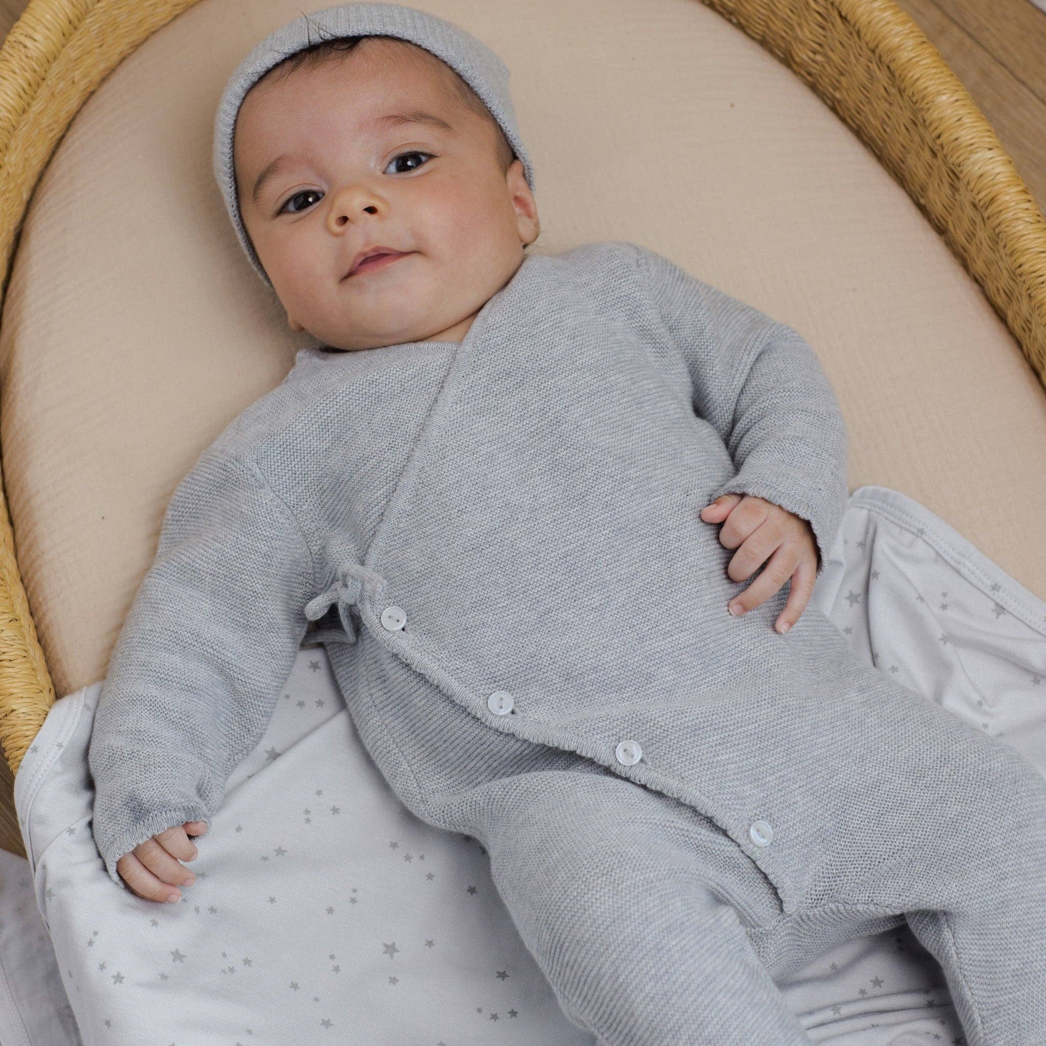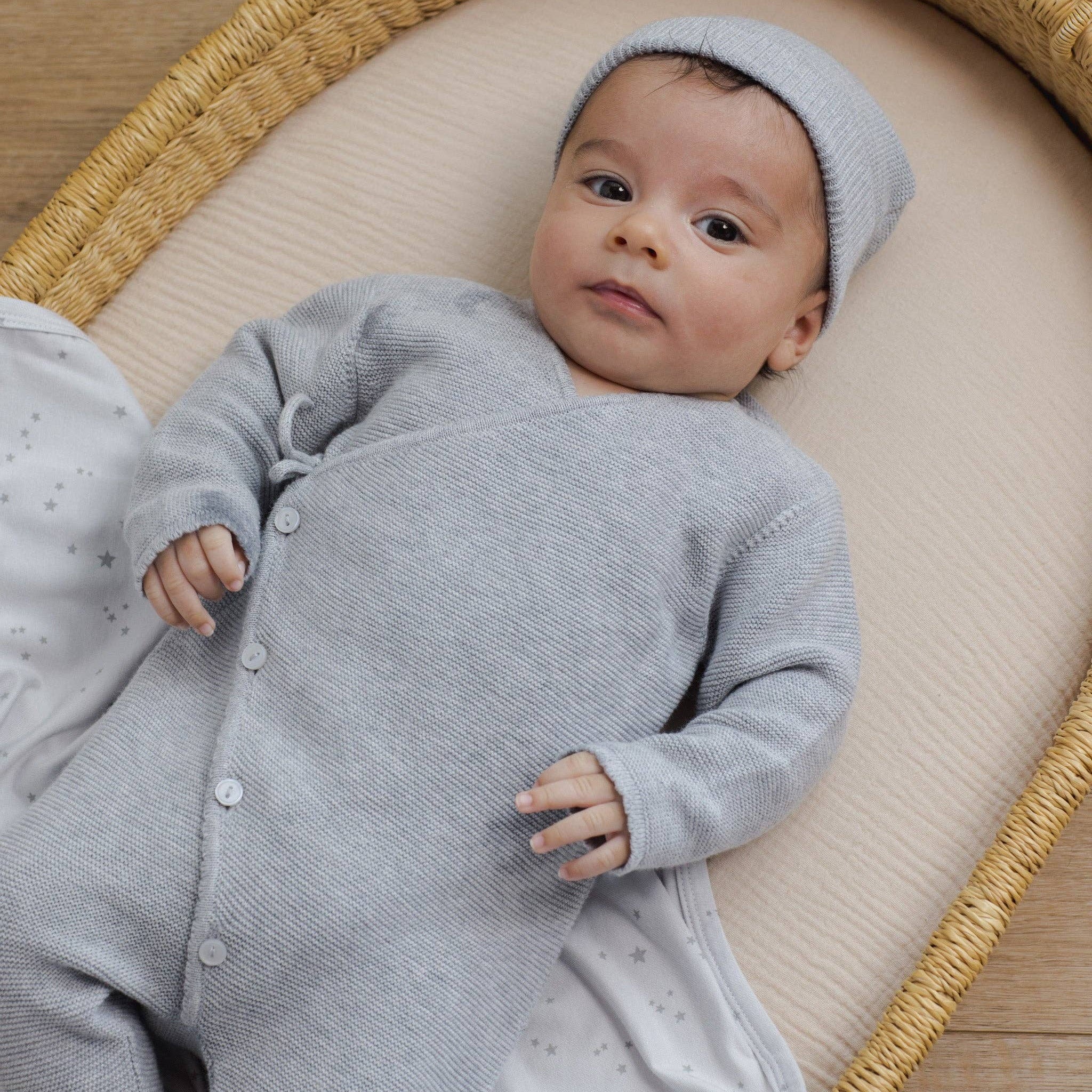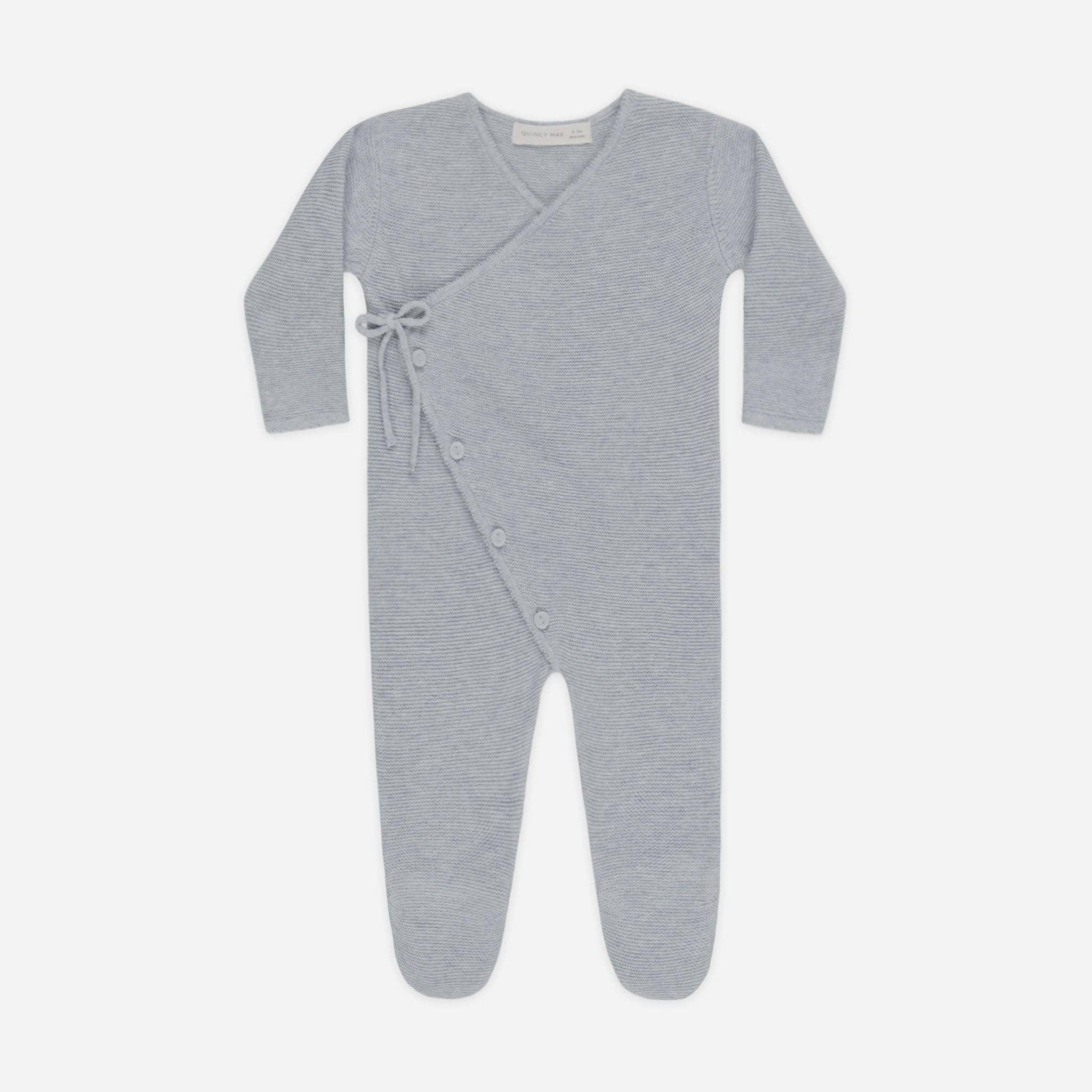 Welcome your newborn in style with this charming heathered dusty blue knit wrap footie! Featuring a clever side-tie design, this sleeper makes nighttime changes effortless while keeping precious little feet snug and warm. The soft, stretchy knit fabric hugs your baby gently without any fuss, and integrated footies mean zero sock-chasing adventures at 3 AM. Versatile enough to layer or wear alone, this playful sleeper is the cozy companion every new parent needs for those sweet early days.