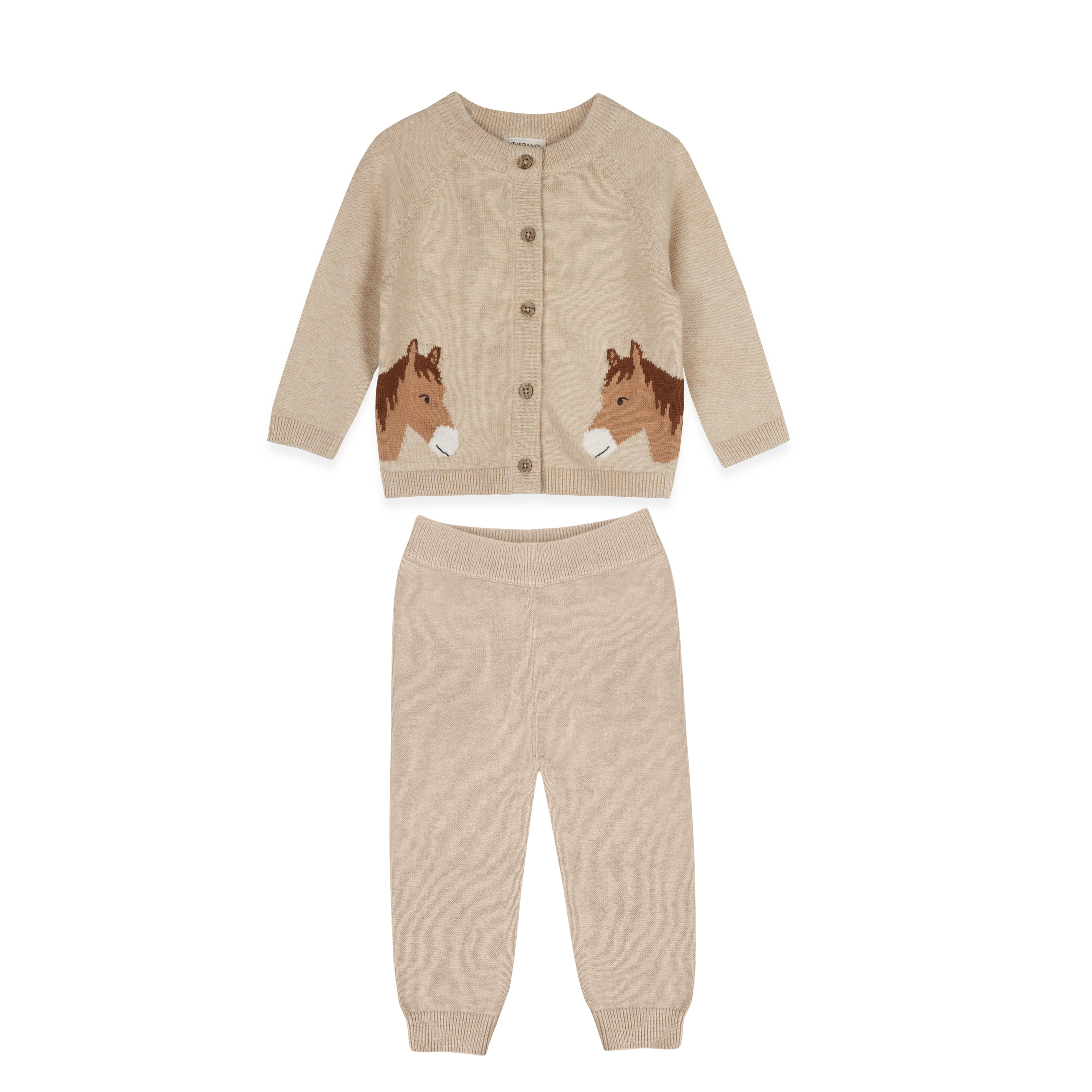 Organic Oatmeal Cotton Horse Baby Cardigan and Legging Set