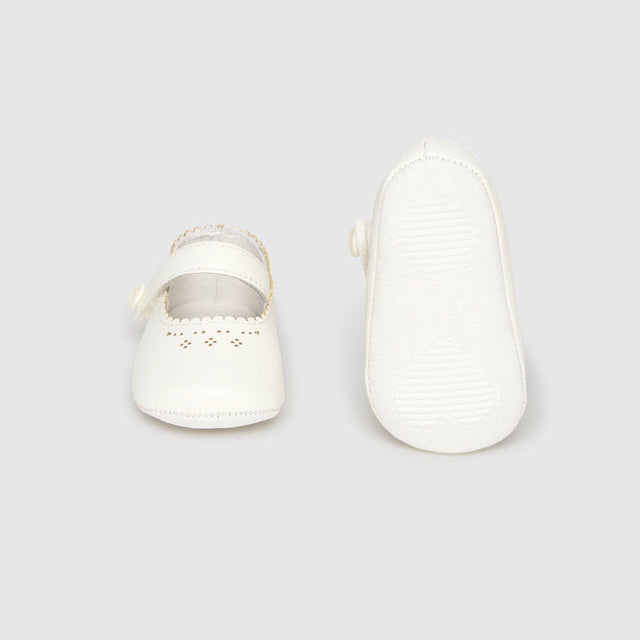 Introducing timeless elegance for your little princess! These natural-toned Mary Jane dress shoes are pure magic for baptisms, christenings, and those picture-perfect moments. The signature strap keeps tiny feet secure while the buttery-soft sole lets her move freely as she explores her world. Classic Mary Jane styling never goes out of fashion—it's the kind of shoe that looks adorable in photos and feels wonderful on delicate feet. Perfect for special occasions or dressed-up everyday wear, these charming shoes are destined to become a cherished keepsake. Your baby girl will look absolutely precious!