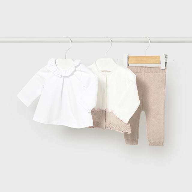 Baby Girl 3-Piece Beige Knit Cardigan Set