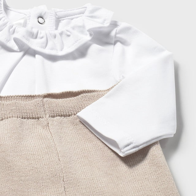 Dress your little girl in effortless sophistication with this lovely 3-piece mole beige tricot cardigan set! The soft cardigan layers beautifully over a crisp white linen shirt, while cozy knit leggings complete the ensemble. The neutral beige tone pairs perfectly with the classic white, creating a timeless look that works for any occasion. Mix-and-match pieces give you multiple styling options from one coordinated collection, stretching her wardrobe possibilities. The quality tricot and linen fabrics feel gentle against delicate skin while maintaining their shape through playtime and washing. Perfect for playdates, family gatherings, or everyday adventures, this versatile set brings understated charm and comfort to her closet.