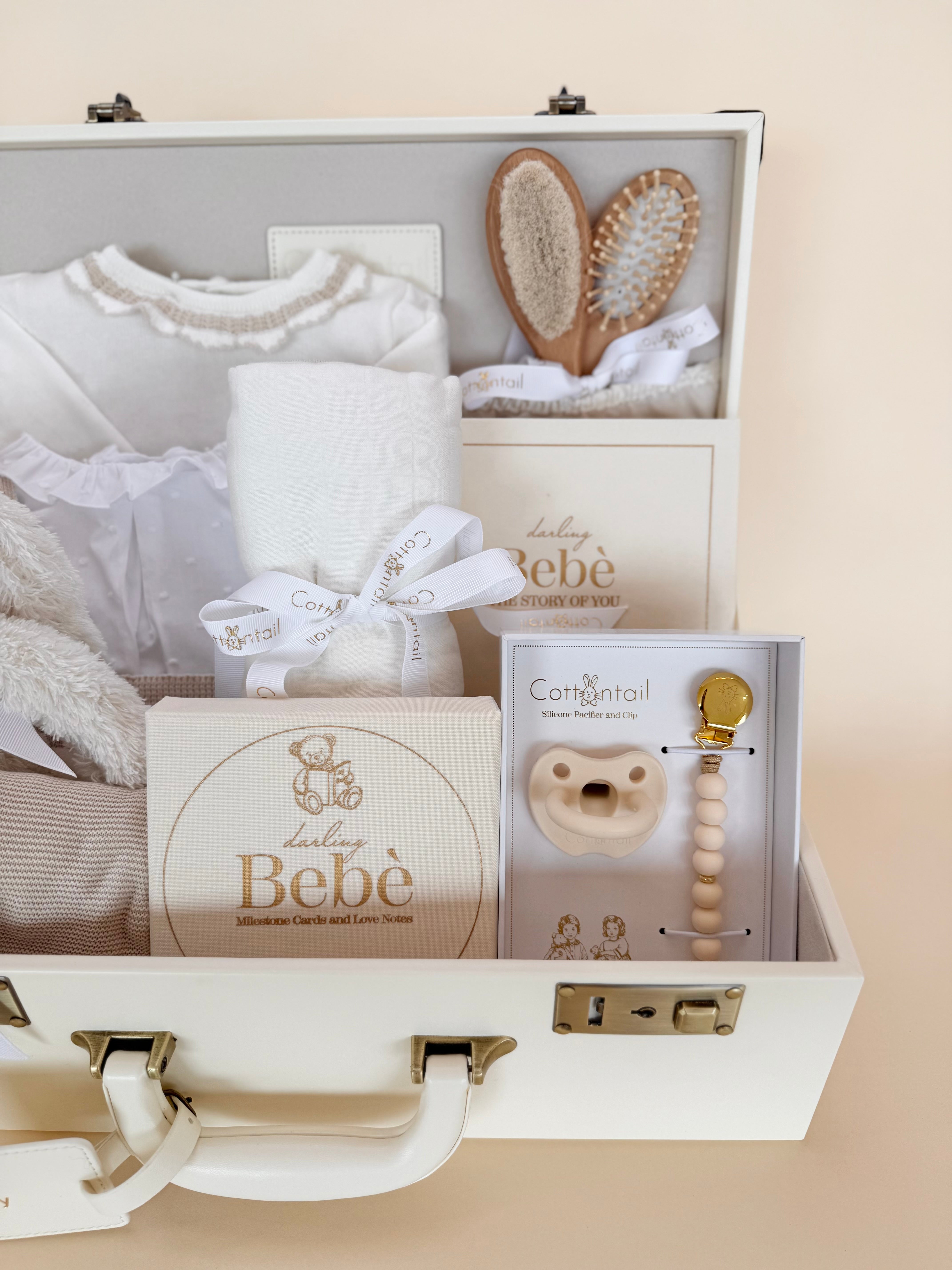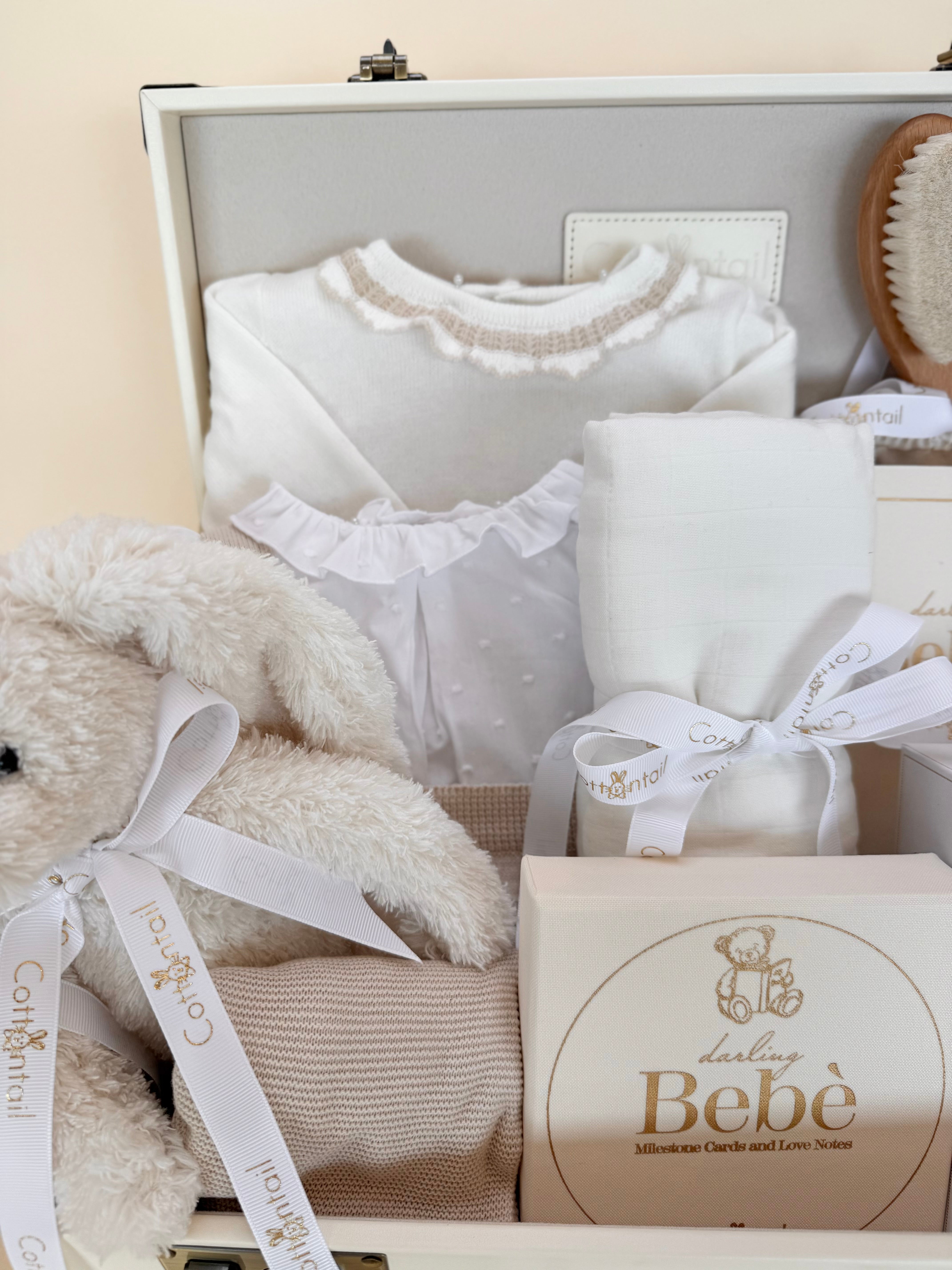 Soft, timeless, and thoughtfully curated, this neutral baby gift set is designed to celebrate the sweetest beginnings with understated elegance. A beautiful balance of comfort and keepsake details, each piece is chosen for its quality, texture, and enduring charm.