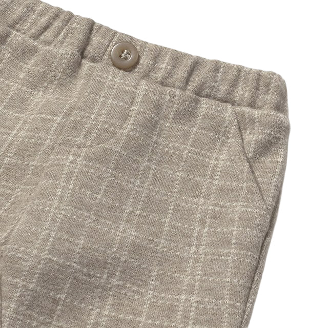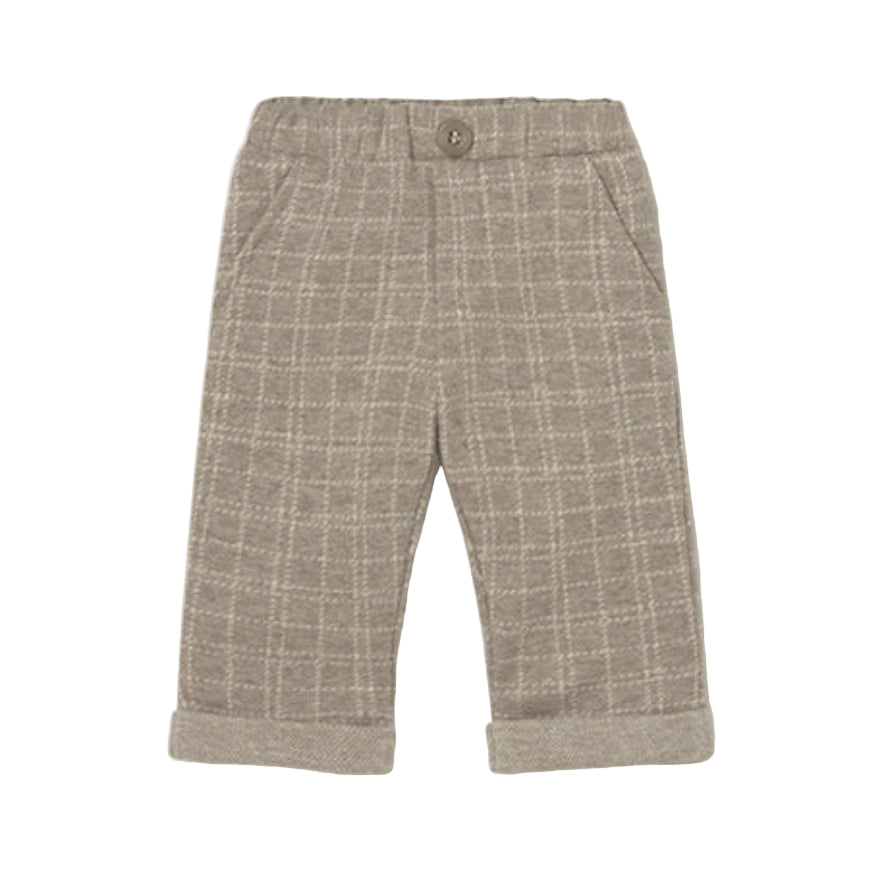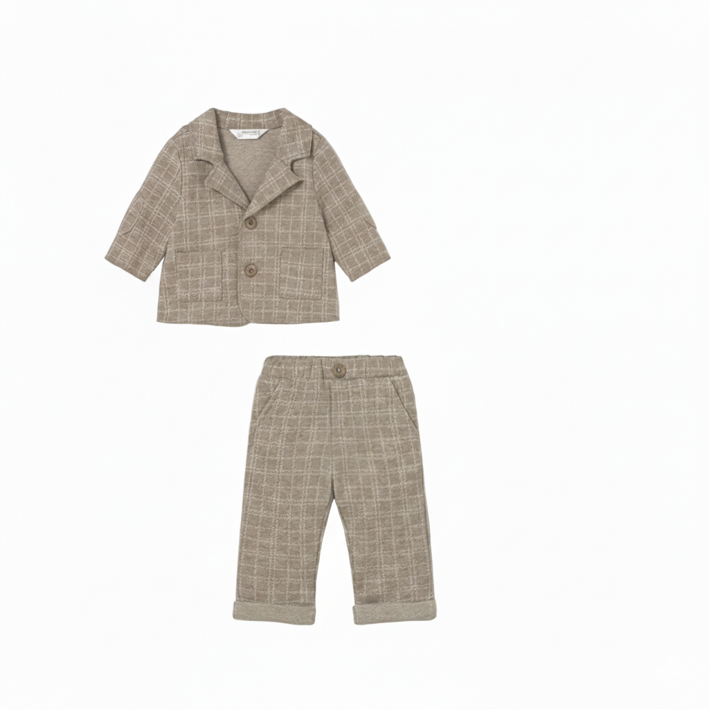 Introduce your little gentleman to timeless style with this distinguished plaid ensemble. Featuring a coordinated blazer and matching pants, this two-piece set showcases classic plaid patterning that exudes refined elegance. Practical front pockets add functionality to the tailored pants, while the structured blazer creates a polished silhouette perfect for special occasions, family portraits, or everyday sophistication. Crafted for comfort and durability, this set allows your baby boy to look dapper while maintaining the ease of movement he needs. An essential addition to any discerning child's wardrobe.